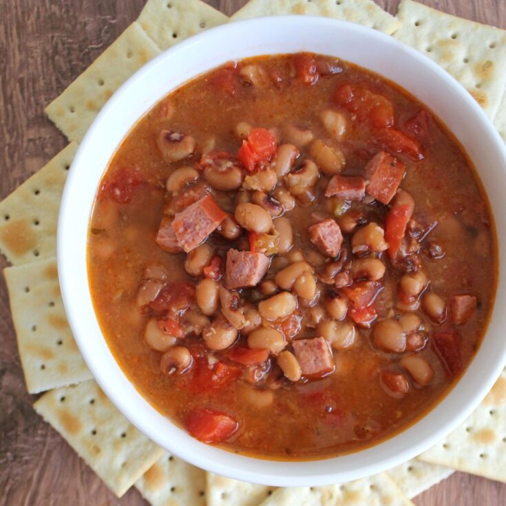 Sometimes I pick up the black eyed peas with bacon or onion and that adds a nice flavor to the soup.