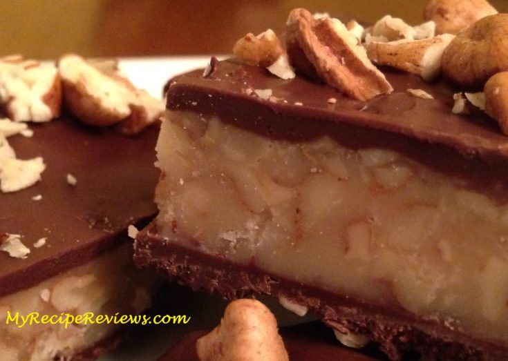 Now, I've had a lot of toffee in my life, maybe too much, but this has to be the best I've ever had. It's not the thin, Heath-bar type of hard toffee - this is about an inch thick and full of pecans with chocolate coating the top and bottom.