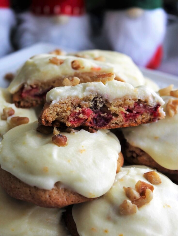 Very soft cookies dotted with fresh cranberries and orange zest and topped with a light glaze.